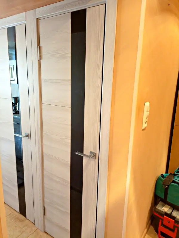 Вставка из черного лакобеля придает двери ТИТАН особую изысканность и визуальную легкость. Она пропускает достаточно света, чтобы сделать пространство более светлым и комфортным, при этом сохраняя приватность и уединение. Геометрические формы стекла подчеркивают современный дизайн двери, делая ее настоящим произведением искусства.
