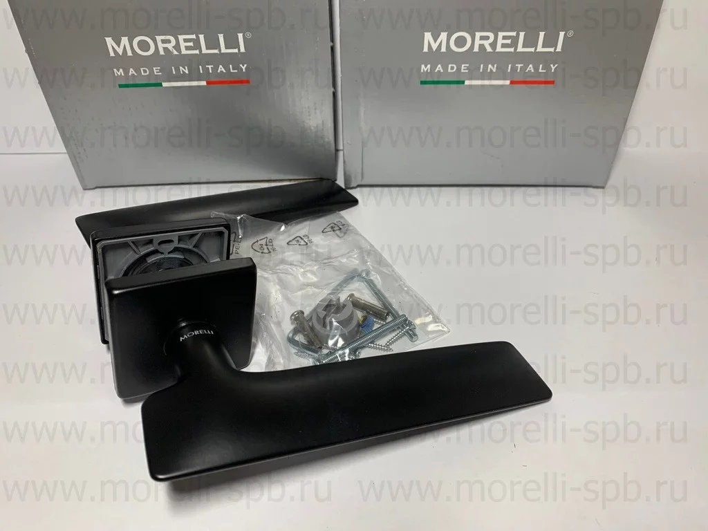 Комплект ручек на 1 дверь (2 шт.) + крепеж четырехгранный стержень, саморезы, стяжные винты, инструкция по монтажу.
