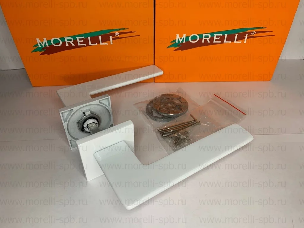 Комплект ручек на 1 дверь (2 шт.) + стяжные винты (2 шт), соединительный квадрат 8×105 мм (1шт), саморезы, фиксирующие винты, шестигранник + инструкция по монтажу